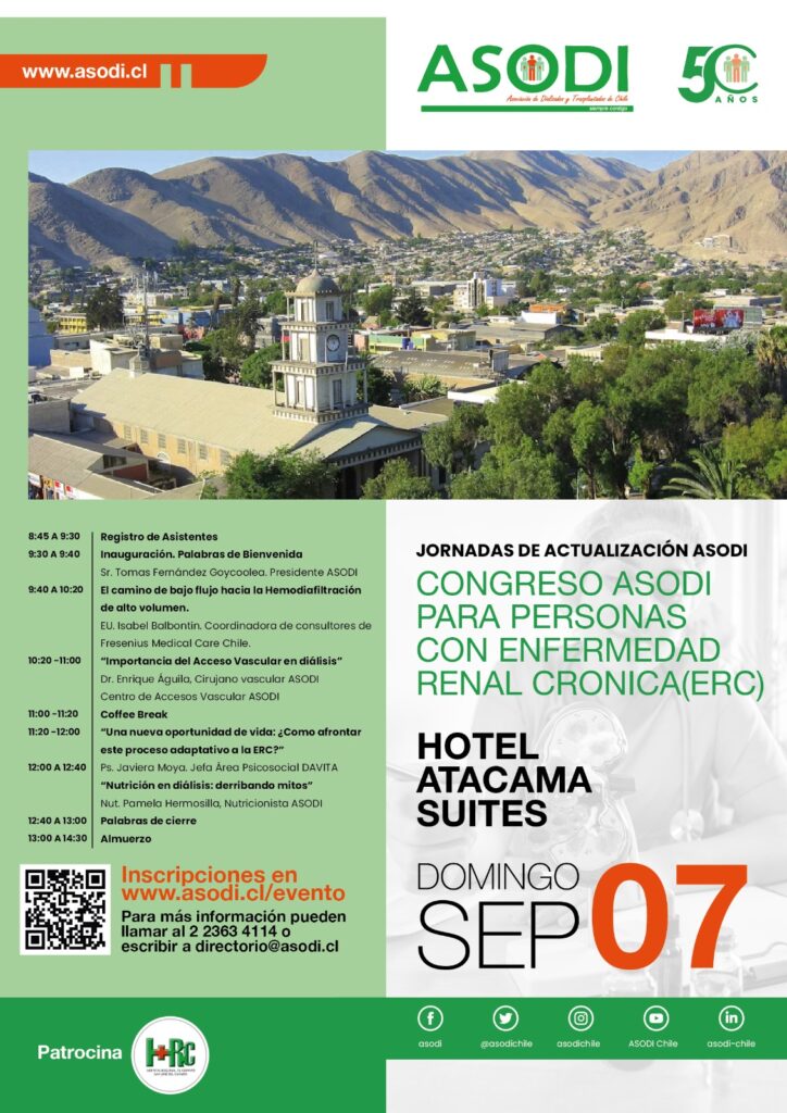 Será un espacio de información y apoyo, con charlas sobre hemodiálisis, accesos vasculares, nutrición y el proceso de adaptación a la ERC. También compartiremos un almuerzo de camaradería.